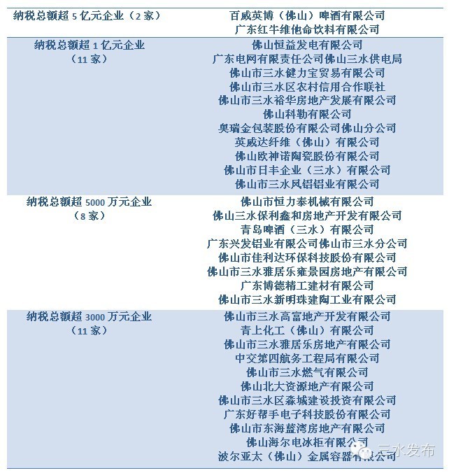 三水纳税大户榜单新鲜出炉!